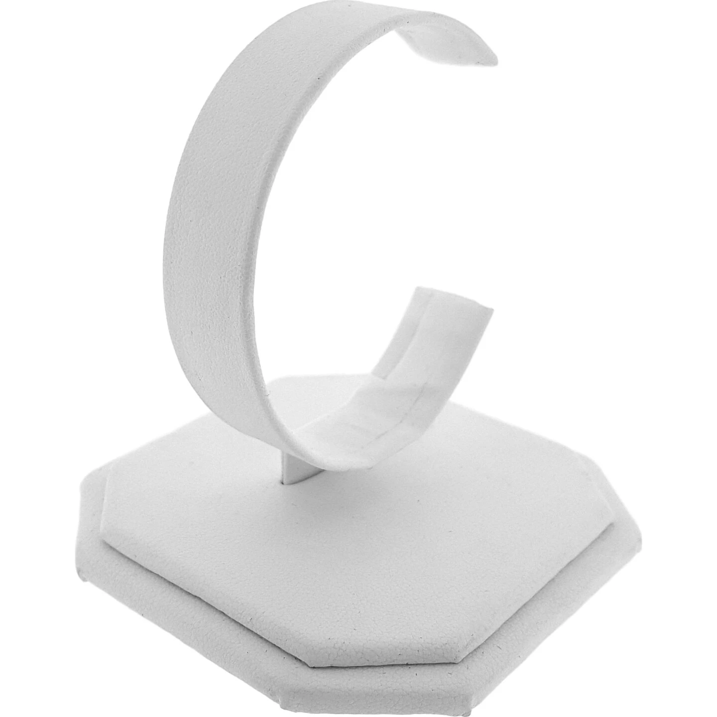 6 New White Faux Leather Watch Display Stands For Jewelry Showcases & Countertops This is a new set of 6 white faux leather watch display stands These are great for countertop & showcase use These are great for store display or gift giving Each measures approximately 3 1/4″ x 3 1/4″ x 3 3/8″ ( 82 x 82 x 85 mm)