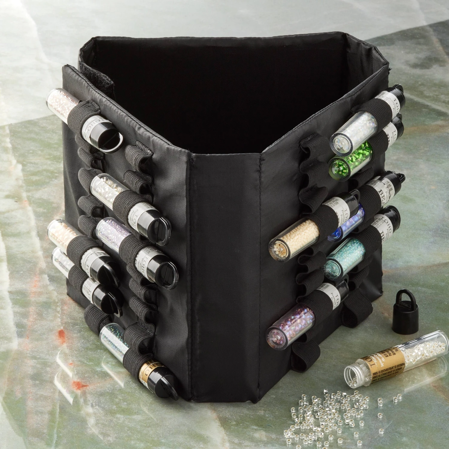 Keep your seed beads neat and organized with this bead tube tower. Designed to fit standard bead tubes, this organizer can stand upright, or can be folded for easy portability.