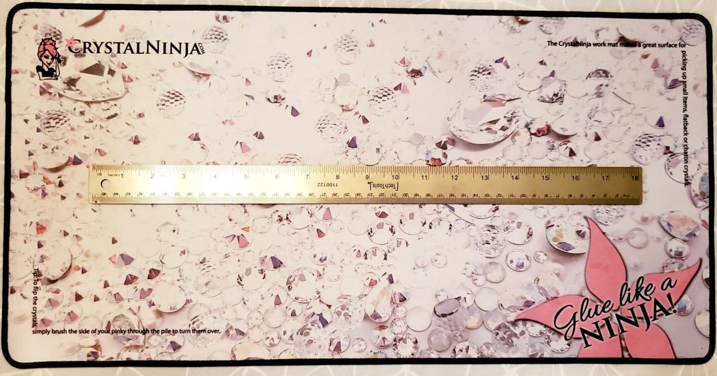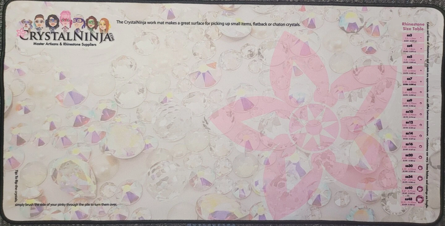 We now have more of the Large Work Mats, they are the same smooth, firm and lint free work mat we use everyday. This mat is best for working with Flatback crystals and glue, as it has no lint to float around and get into wet glue. It also has the perfect surface for flipping the crystals. Just rake across them with your pinky finger and choose the crystals facing the correct position.