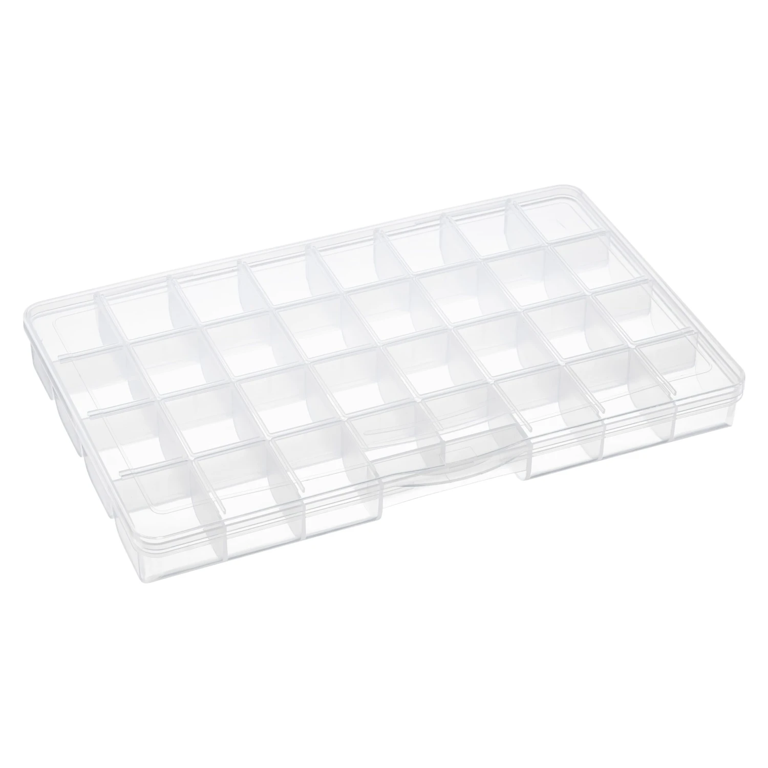 This craft organizer keeps all your small craft and jewelry components secure and easy to locate. Grooves in lid keep the compartments snug and the contents from falling out or getting mixed up. The rounded edge on the bottom of the compartments make it easy to retrieve small items quickly. This container is stackable, contains 32 separate compartments and has a built-in handle.