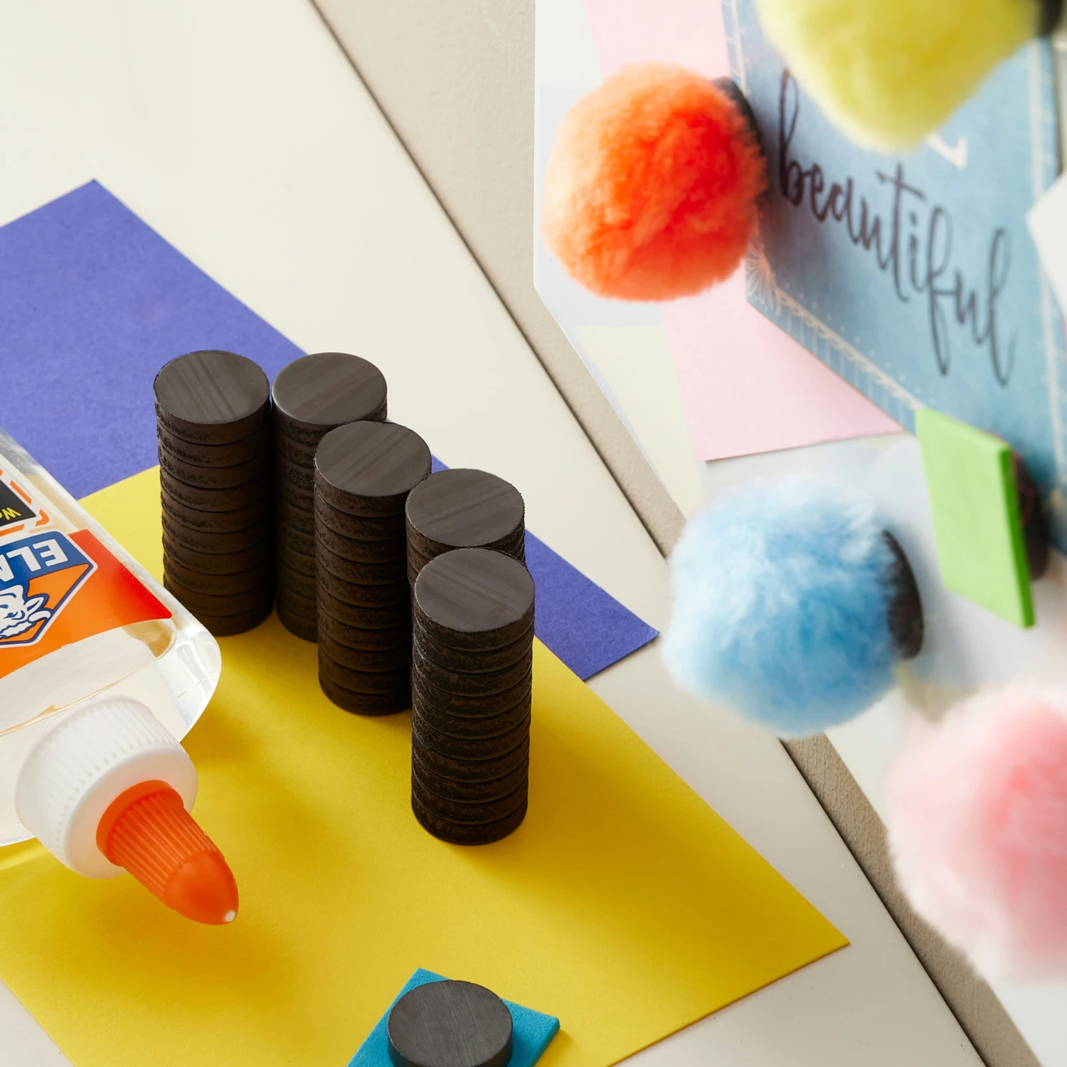 Glue these high quality round magnets to your project for instant magnetic art. These magnets are strong enough to hold several sheets of paper to a metal surface. Flexible magnet is .187″ thick.