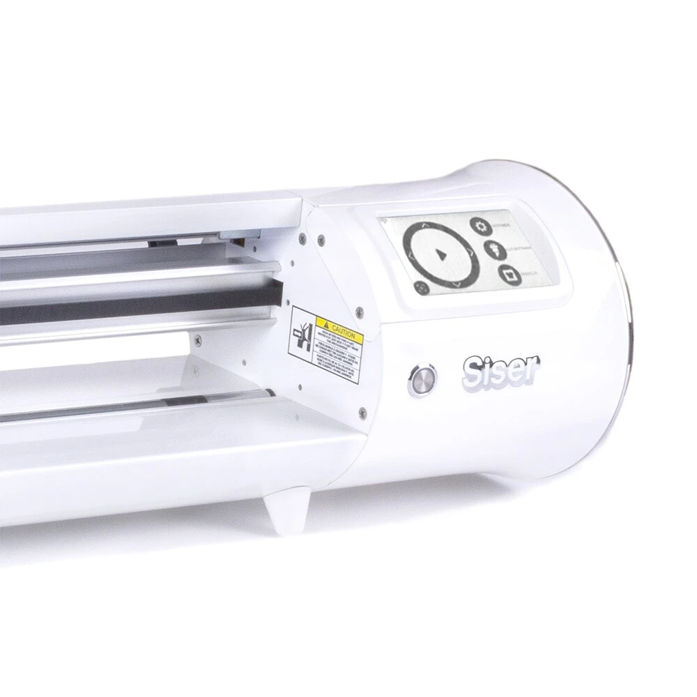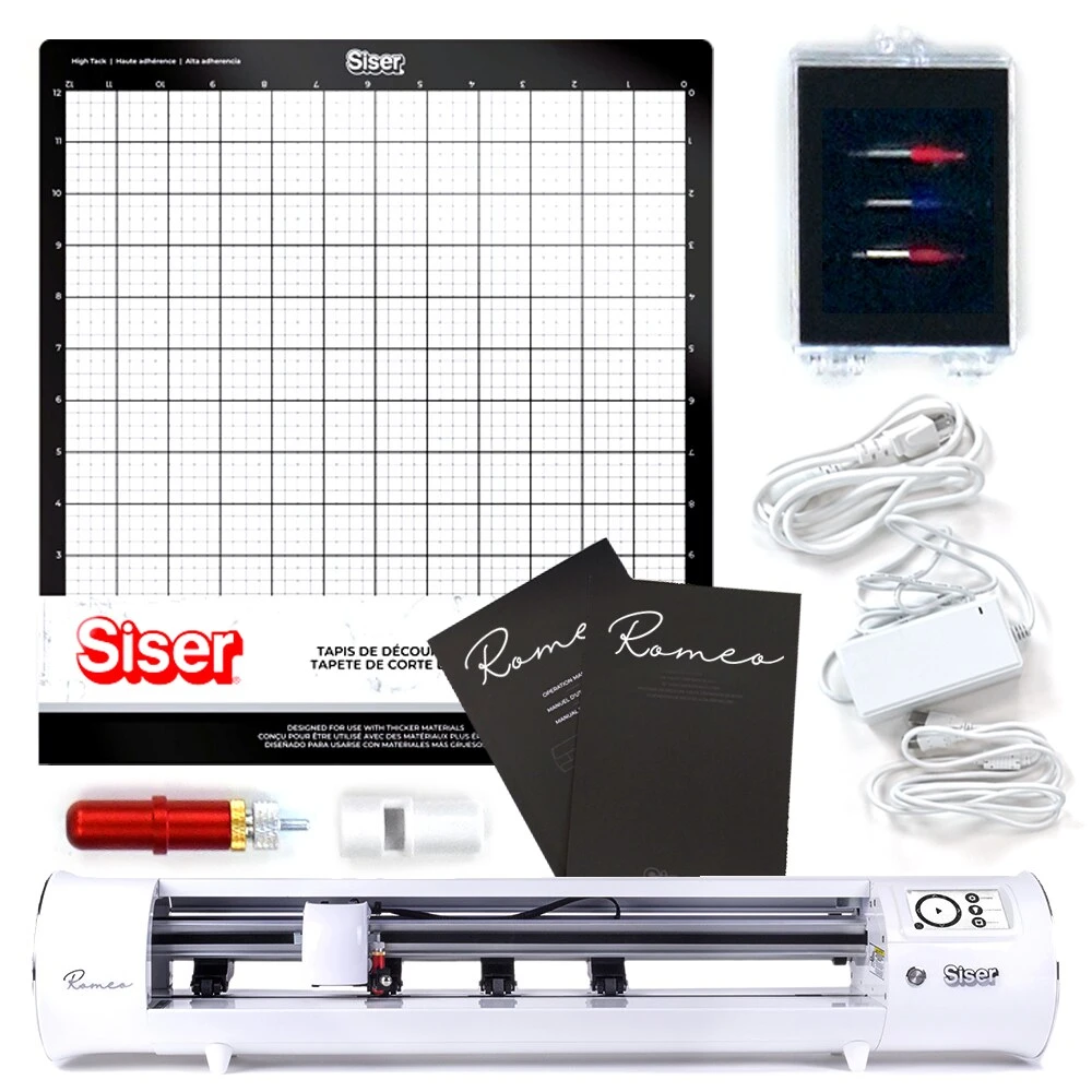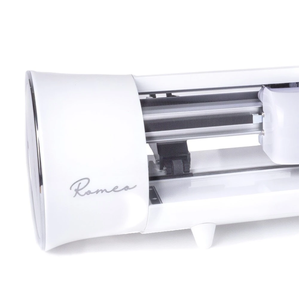 From fine detail to extensive lengths , Romeo is capable of completing projects of all kinds so you can make more than ever before. Sleek touch screen includes Siser-specific presets and a built-in registration camera. Cut without a mat and from a roll, change cut settings on the fly, or choose where your cut begins. Included: Cutter, Blade Housing, 45° Blade (x2), 60° Blade, Siser Sublimation Marker Adapter, USB Cable, AC Power Adapter, Instruction Manual, High Tack Cutting Mat, Sample Cover Sheet, EasyWeed Sample Sheets (x2). Romeo is designed for all Siser heat transfer vinyl and EasyPSV decal vinyl via the pre installed cut settings. Works superbly with other materials such as cardstock, stickers, craft foam, and much more. Cut materials up to 24″ wide using the included cutting mat, or go matless and cut longer rolls using the custom roll feeder (coming soon). Say goodbye to loud motors and horrible grinding noises that some cutters produce. Romeo is quiet. Perfect for cutting while watching your favorite shows or when the kiddos are fast asleep! Leonardo Design Studio: Easily connect Romeo to Leonardo Design Studio via the included USB cable or a WiFi connection! Leonardo Design Studio is also an incredibly versatile workspace. Use the built-in canvas and tools to create your own artwork from scratch, or download premade files from the extensive art library. You can also view swatches and specs for every Siser material, get inspiration from our handmade projects, learn new skills with tutorial videos, and so much more. Leonardo Design Studio is free with every Romeo purchase. Notice regarding Material Roll Holders: Romeo cutters do not currently come packaged with a Material Roll Holder. Every Romeo cutter will begin including a Material Roll Holder when they arrive in March of 2023. Customers who purchase and register their Romeo machines before March will receive a Material Roll Holder to them *free of charge* once they are available.