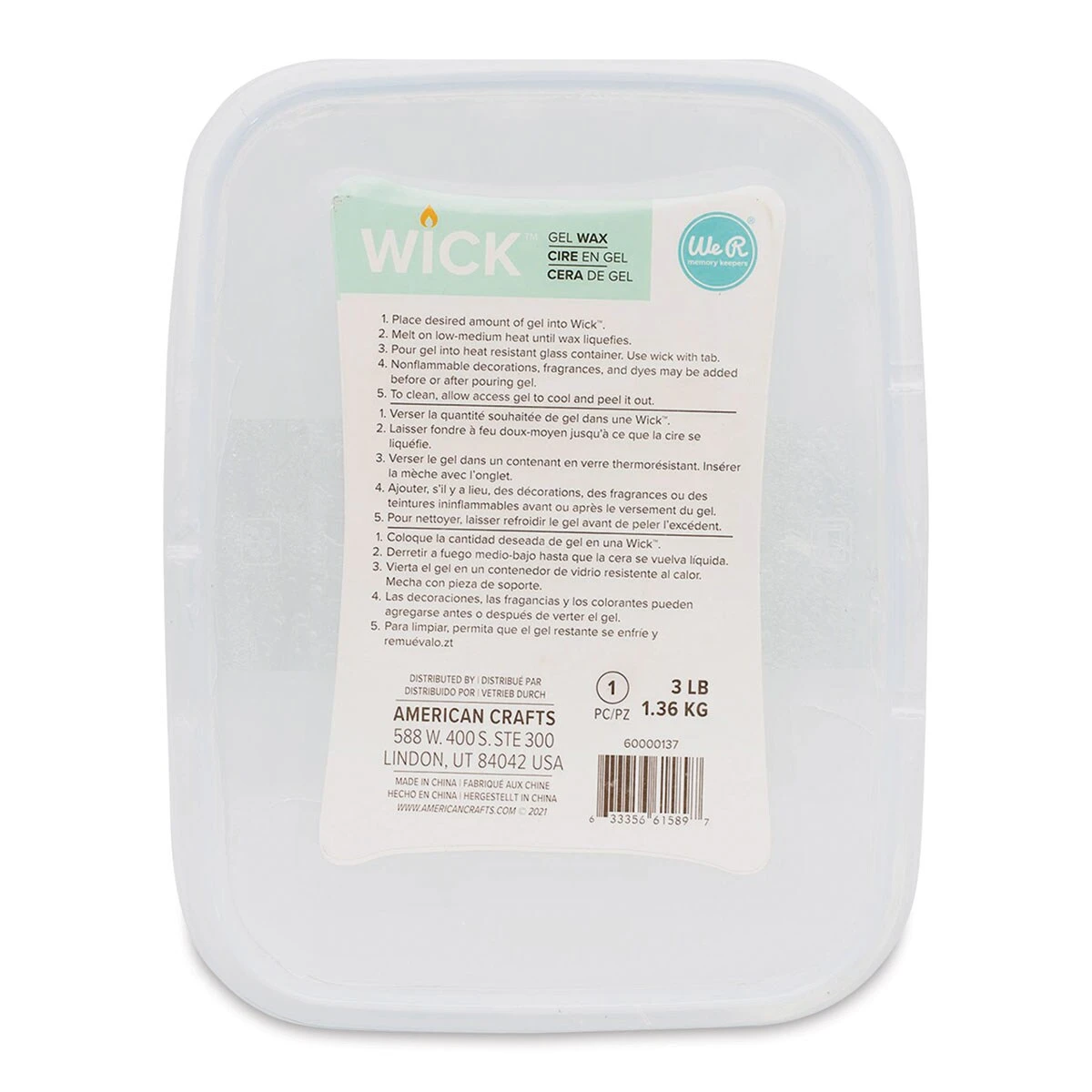 Keep a supply of We R Memory Keepers Wick Candle Making Waxes on hand for whenever the creative urge to make candles strikes. High-quality waxes are specially chosen to be used with the We R Memory Keepers Wick Candle Maker for easy candle making and cleanup. Simply melt wax, stir in a scent or color (sold separately), then pour into the mold of your choice. Package contains 3 lb. – We R Memory Keepers Wick Candle Making Wax – Gel Wax, 3 lbWick Wax, GEL WAX 3 LBS – Clear, jelly-like wax lets you create sparkling, see-though candles. Non-flammable decorations may be added to the melted gel wax for interesting effects. Gel wax is made from a mineral oil blend that burns longer than paraffin.